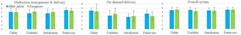 Average Likert scale score across 28 interview participants (20 older adults and 8 caregivers) for the SHEBA prototype 2